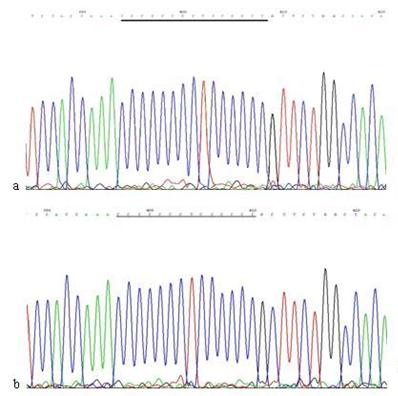 Mutations in the mtDNA Cytb gene. a: Sequence of mtDNA of AGS cells without treatment. the section under the black line represents the normal sequence; b: Sequence of mtDNA of AGS cells stimulated by 960 µg/ml of Hp11638 extract for 24 h. The section under the black line represents the mutant sequence. The sequencing was carried out from both directions and twice.