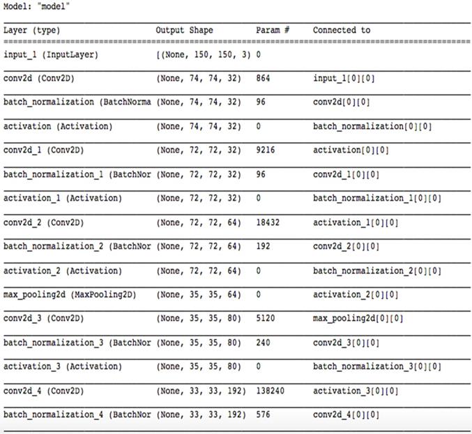 which are provided by shortest connection. SoftMax was used at output layer with 15 classes. Input and output for this model is same as described in Model 1. Model was built on Keras using TensorFlow. Remaining details are shown in Figure 5.