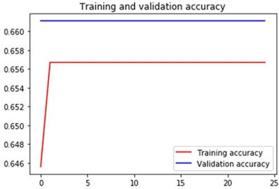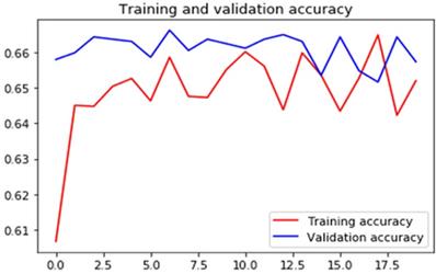 Training and validation accuracy of the convolutional neural network using image argumentation.