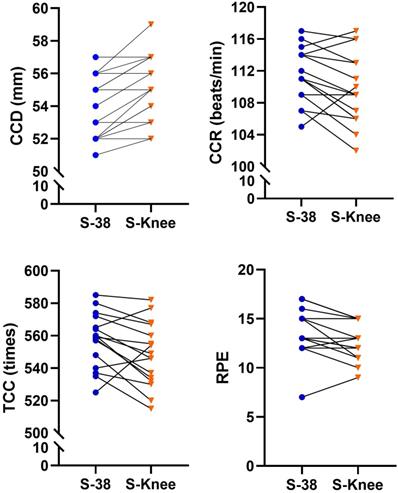 S-38, stretcher with a height of 38 cm. S-knee, stretcher at knee height. CCD, chest compression depth. CCR, chest compression rate. CCRR, chest compression rebound rate. TCC, total chest compressions. CCF, chest compression fraction. RPE, rating of perceived exertion.